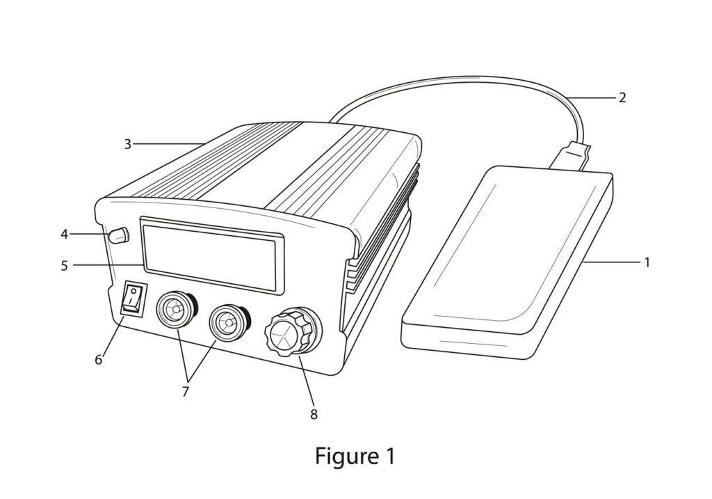 2)The device as claimed in claim 1 is powered by an external and detachable power bank (Figure:1-1) for safety purpose as power comes from the power bank and not from mains AC power, thus saving the patient from the risk of electrocution. (A technical advance over the prior arts)